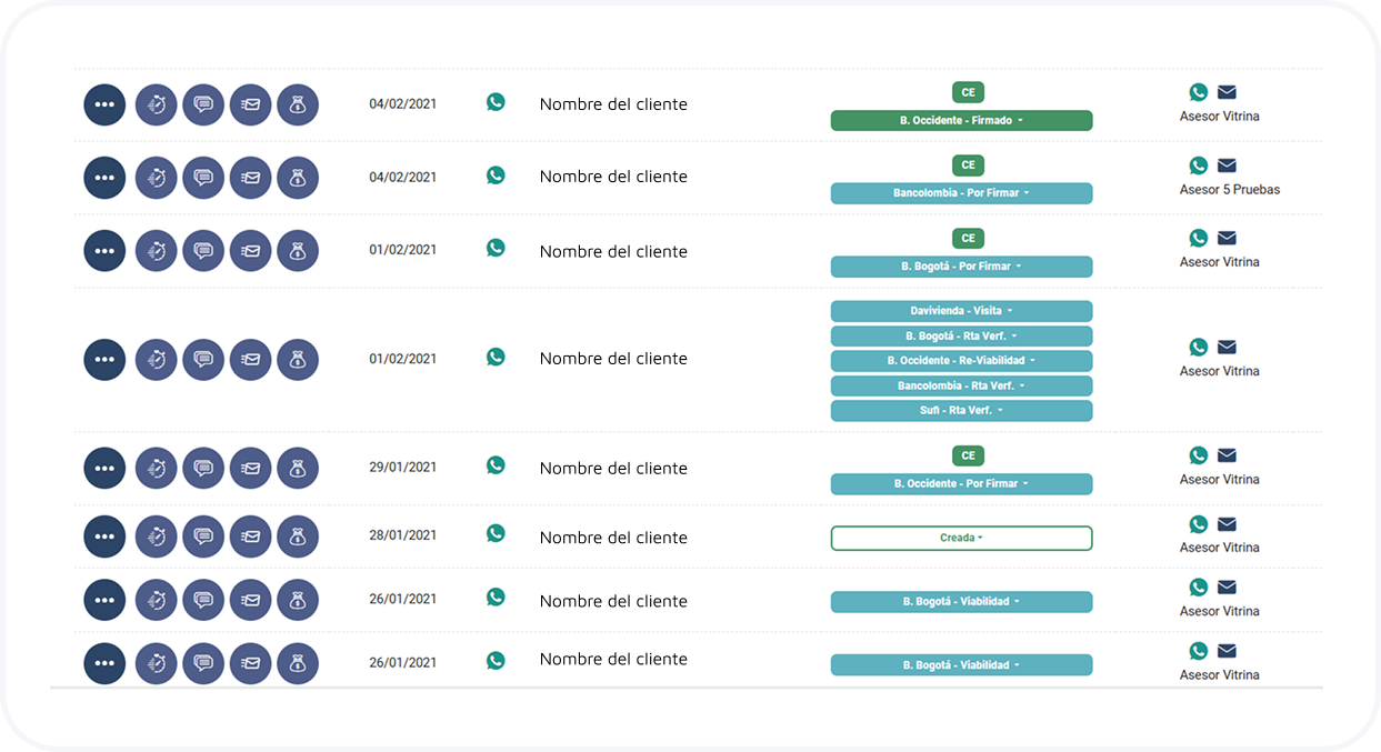 Prospección y creación de cliente, creación de solicitudes, envío inmediato a múltiples bancos